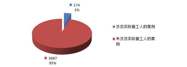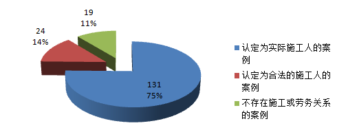 (1)根据搜集的3861份2013-2014年度全国建设工程纠纷案件中,有174份裁判文书中对当事人进行了实际施工人的身份进行了认定。