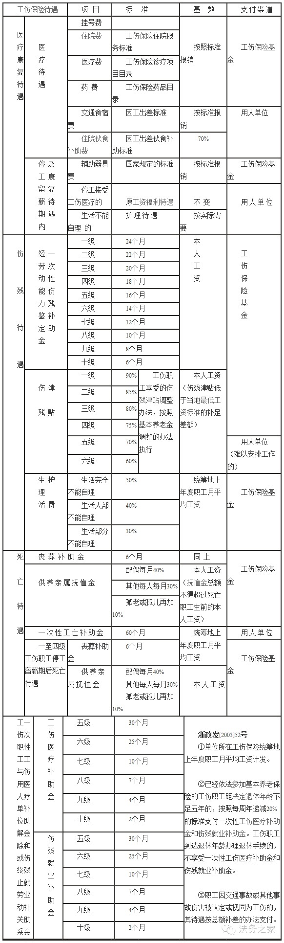 一、工伤保险待遇一览表(2014)